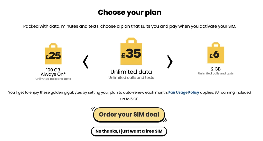 官网地址:https://www.giffgaff.com/freesim-international ,点击 No thanks,I just want a free SIM 即可。