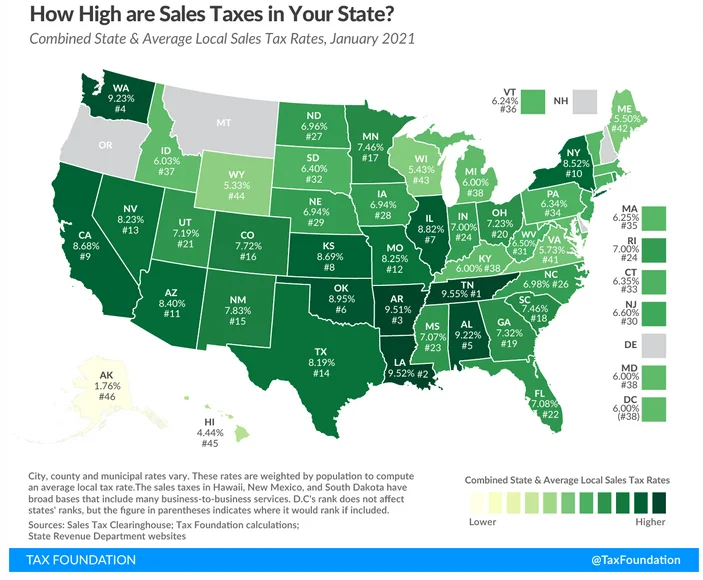 美国有5大免州消费税的州,虽然州内的地方政府(市政府)会征收购物消费税,但是比起那些既要被州政府征税,又要被市政府征税的州来说,这已经是相当不错的了。